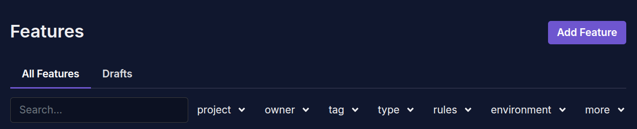 We’ve revamped the search experience within GrowthBook to make it easier to find feature flags and metrics. Easily filter by project, owner, tag, type, and more. The best part is that all of your filters are encoded in the URL, so once you find a view you like, you can easily get back to it or share it with your team. We’ll be rolling this out to other parts of the app soon.