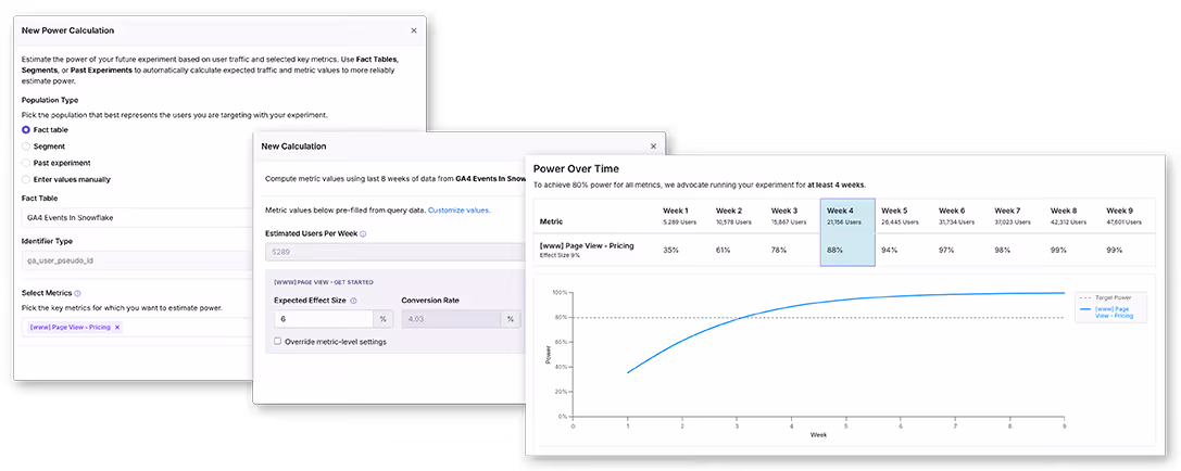Many existing A/B test calculators estimate required sample sizes for statistical power but lack access to your historical data and specific metric definitions, limiting their accuracy. Recognizing this gap, we've developed our new built-in Power Calculator to provide more precise and tailored estimates.